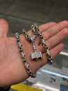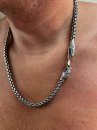 Full-fledged silver chain around the neck.